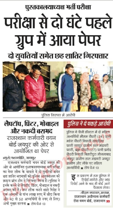 RSMSSB librarian paper out news today – लाइब्रेरियन परीक्षा का पेपर हुआ आउट